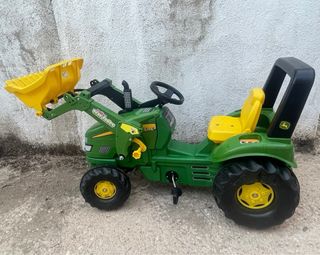 Tractor de pedales Rolly Toys John Deere con pala cargadora. Está prácticamente a estrenar. - Diseño icónico de John Deere en color verde y amarillo. - Pala frontal funcional. - Asiento amarillo. - Ruedas todoterreno con detalles amarillos.