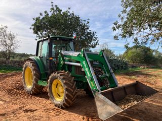 John Deere 6330 con pala frontal pesada Metal-Technik, disponible por horas con conductor experimentado. Precio: 120 € / hora Incluye: Tractor John Deere 6330 (4x4, cabina) Pala grande de carga Pala para piedras / cribado Horquillas / pincho Barrena (taladro para postes y árboles) Conductor profesional Ideal para: Movimiento de tierras Carga de piedra, grava, tierra, compost Preparación de terrenos Trabajos en fincas y obras Perforaciones para vallas, olivos, pérgolas Servicio flexible en toda Mallorca. Contactar por mensaje para disponibilidad. - Modelo: John Deere 6330 - Equipado con pala frontal - Servicio con conductor incluido
