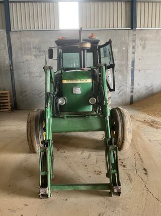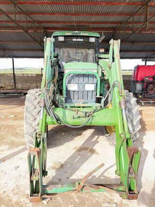 Tractor John Deere en buen estado, listo para trabajar. Equipado con pala frontal. - Pala marca López Garrido. - Modelo LG3 1400. - Ruedas delanteras y traseras en buen estado. - Luces de trabajo y señalización.