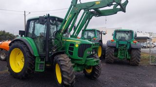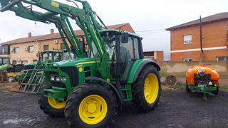 Tractor John Deere modelo 6220 4WD 4 cilindros 4525cc 95cv En buen estado general 12000h Soportes para pala tenias / lopez garrido con instalación hidraulica. Itv recien pasada Ruedas delanteras nuevas Brazos y tercer punto con enganche rapido. Elevacion electronica de los brazos traseros desde la aleta Contrapeso en ruedas traseras. Filtros y aceites sustituidos. 4 marchas 4 grupos 4 salidas de aceite Salida hidraulica freno remolque Toma fuerza 540rpm & 1000rpm