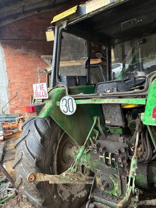Tractor John Deere 3140 año 1987. -105 cv -Doble tracción. - ITV recien pasada hasta febrero de 2027. - Se reparó camisas de cilindros, pistones, inyectores y embrague y ha trabajado unas 50 horas tras la reparación. -4 focos led - Enganche rápido - Cabina homologada en ficha técnica. - Cinturon seguridad y pito seguridad marcha atrás. - 6700 Horas - Anclajes e instalación de mandos pala clavellinas. Se vende por no usar. El tractor se encuentra en Fuente Palmera (Córdoba)