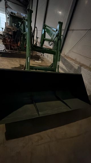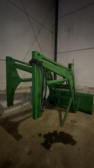 Pala frontal de la marca John Deere, diseñada para tractores John deere 6 cilindros - Recien pintada. - Color verde. - Estructura robusta. - Cazo grande Se vende sin monomando