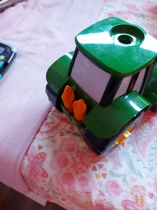 Lote de tres juguetes infantiles. - Tractor John Deere verde con detalles. - Portátil Fisher- Price interactivo con teclas de colores. - Karaoke Kidikaraoke de Vtech. Todos funcionan perfectamente.