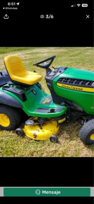Tractor cortacésped John Deere X155R en color verde y amarillo. - Asiento amarillo. - Ruedas delanteras y traseras. - Plataforma de corte amarilla. - cuchillas nuevas -motor puesto nuevo con escasas horas de trabajo,hay que hacerle Rodaje aún -asiento como se ve en la foto algo desgastado,se !Aclaro cualquier duda sin problema!! ---Esta en la zona de Leon (La Bañeza)---