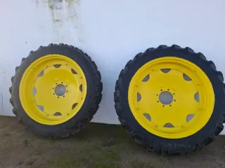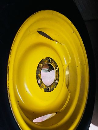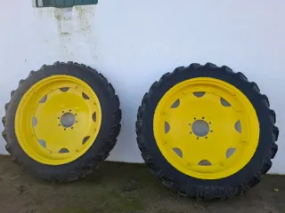 Juego de dos ruedas estrechas para tractor John Deere sin Uso prácticamente. Ideales para trabajos específicos. - Llantas amarillas. - Neumáticos de gran tracción al 99% - Dimensiones 270/95 R44. - 8 Espárragos y buje de 22 cms.