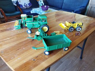Lote juguetes John Deere años 70. Metal. Estado perfecto, sin usar nunca. Cosechadora segadora 6600, tractor, empacadora y remolque. De regalo pala Tonka. No se venden sueltos, solo el lote completo. Se admiten ofertas.