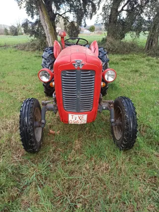 Tractor Massey Ferguson modelo 247F en color rojo. - Ruedas delanteras y traseras. - Asiento del conductor. - Volante. 47cv - Luces naranjas de advertencia. Tiene aperos, revisión recién hecha. Se puede transferir tiene menos de 40años Se entrega con la itv recien pasada Disponemos también de un remolque