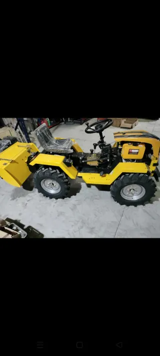 Comercial Antonio tlf:685-510-216//644-607-762.Venta y envios para toda España.Entregas inmediatas.Minitractor T12 articulado 4x4 4.900,00 € Impuestos incluidos Mini tractor articulado con tracción a las cuatro ruedas 4x4, con motor diesel de 12cv y arranque electrico, cuatro marchas adelante cortas y largas y dos marchas atrascorta y larga. Incluido rotavator.Luces leds,bomba hidráulica eléctrica regulable, transmisión por cardan,consumo 1,5 litros por hora.Ideal para huertas,granjas,viveros,terrenos blandos.Tipo Pascuali,iseki,kubota...