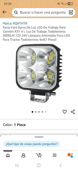 Disponen de una luz naranja alrededor que se pueden usar como luz de día o intermitente y potente luz central. La parte trasera es el radiador , pero para el calor que sueltan va de sobra. Incluye sujeciones. Datos: Faro de Trabajo Led 12V - 126W de potencia Luces de Faro Antiniebla Luz de Ojo de Angel IP67 Impermeable Focos Led Tractor,Off-Road Tractor, 4X4,Camión, Moto, Barco. Vida laboral: 50,000 horas Material de la carcasa: perfil de aluminio endurecido Salida: 12000LM (unidad individual) Voltaje de funcionamiento: 9 ~ 30V (apto para todos los vehículos de 12V / 24V) Haz de luz: reflector de 15 ° y reflector de 170 ° Peso: 1kg