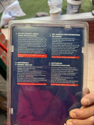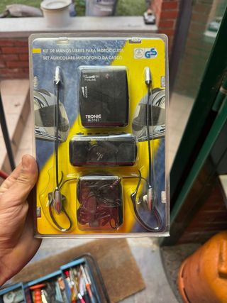 Kit de manos libres para motocicleta con auricular y micrófono. - Incluye dos unidades de auricular- micrófono. - Módulo de control con interruptor ON/OFF y control de volumen. - Conexión jack de 3.5mm.
