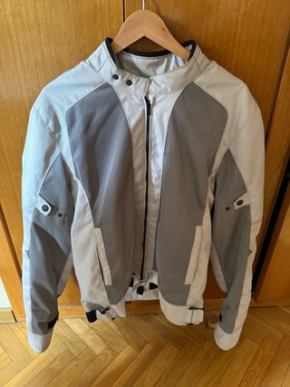 Chaqueta de motorista de verano desmontable, con protecciones en hombros, espalda y codos. 4 años de uso, en buen estado. Precio original 100 €, lo vendo a 40€, escucho ofertas.