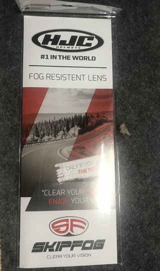 Lente antivaho SKIPFOG de HJC para visores. - Lente resistente a la niebla. - Diseñado para un ajuste perfecto en el visor. - Crea un sistema de doble visor. - Material que absorbe la humedad.