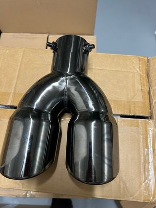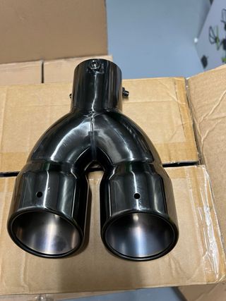 Tubo de escape de la marca Duramas con embellecedor incluido. Presenta un diseño deportivo y elegante con acabado cromado en las puntas. Lo llevaba mi antiguo Peugeot 308 un 1.2 y sonaba muy elegante sin dar mucho el cantazo ( tengo videos del sonido para el que este interesado).