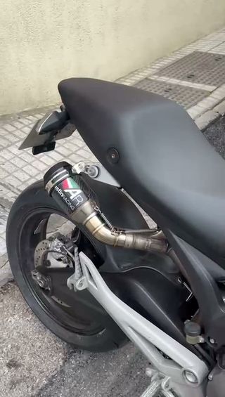 Sistema de escape Mivv GP Pro en carbono para Yamaha MT07. Incluye colectores y silencioso. En casiperfecto estado, solo con el pequeño golpe ese al final de colector. IMPORTANTE!! La placa no es original, y los muelles tampoco,los incluyo por si sirven Paralbras --- MIVV, escape MIVV, Mivv GP Pro, GP Pro carbono, tubo MIVV, escape carbono, silencioso MIVV, silencioso GP Pro, escape moto, tubo escape moto, silencioso moto, escape deportivo, escape racing, sonido deportivo, sonido grave, mejora sonido, mejora rendimiento, ligero, carbon fiber, carbono, db killer, homologado, Euro4, Euro5, Yamaha, Honda, Kawasaki, Ducati, KTM, BMW.