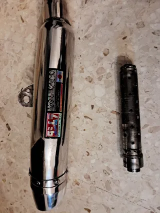 Tubo de escape Yasuni R. tengo la bala tambien,tiene un pequeño golpe que se aprecia en las fotos,pero no afecta al rendimiento esta tal cual a las fotos LA BALA NO TIENE FIBRAS