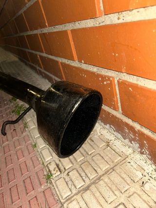 Cola de escape de la marca Targa. Cola de escape de la épica marca targa,con algún signo de óxido. - Fabricada en metal pulido. - Diseño cónico. - Incluye tornillos de sujeción. 23 CMS de largo, diámetro máximo del tubo de escape unos 5 CMS. No leer SEAT 124,131,127,132,124 sport.