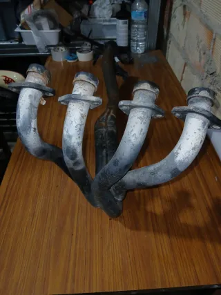 Colector de escape para Suzuki Bandit 400. Pieza de metal con varios tubos que se unen en un punto.4 en 1 -
