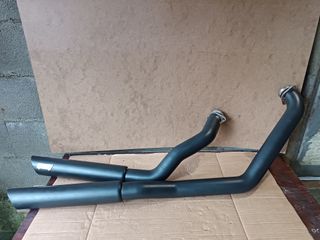 Sistema de escape cromado para Suzuki Intruder 800. - Doble silencioso. - Diseño curvo y elegante.