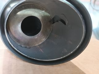 Tubo de escape para Suzuki Samurai de inyección. Pieza metálica con forma curva y dos extremos. - Conector de entrada con brida. - Conector de salida con reborde. - Elemento central con forma de catalizador. Precio algo negociable