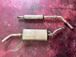 Silencioso para VW Corrado 16V. Pieza de recambio para el sistema de escape. Sin grietas ni fugas - Doble salida. - Material metálico. Le falta un trozo pequeño donde empalma con el siguiente tubo