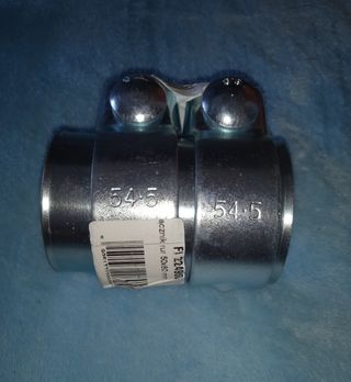 Tubo de presión de caucho con abrazaderas metálicas. - Caucho negro corrugado. - Abrazaderas de metal plateado.