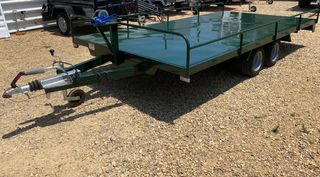 Se vende remolque plataforma con doble eje. Ideal para transportar todo tipo de mercancias. Disponible en varios pesos. Desde 750 kg hasta 1500 kg (Ampliable a 3500kg). Medidas de 4m de largo x 2 de ancho. Pintura en varias opciones. Tara de 400kg Aprox. Rueda de repuesta incluida. Laterales en forma de tubo incluido. Barandilla consultar. Modelo Nay TPT400-TUF Muchos más remolques en REMOLQUES NAYCAMPER.COM Posibilidad de transporte a toda la península. Remolques NAYCAMPER. 6.-1.-4.-1.-6.-1.-9.-9.-7 - Plataforma de carga. - Doble eje para mayor estabilidad. - Barandillas de seguridad. - Ruedas de buen tamaño.