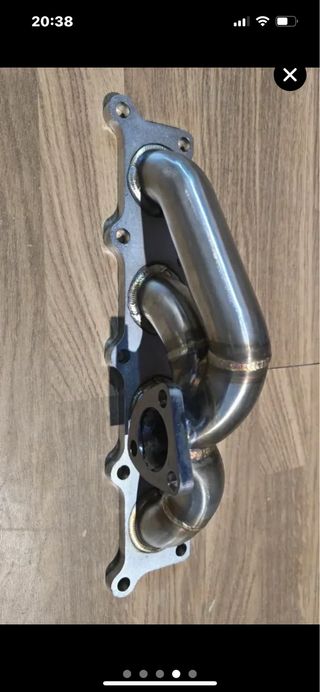 Colector de escape de acero inoxidable para motores 1.8 Turbo. - Diseño 4x2. - Compatible con turbos K03 y K04. - Acabado pulido.