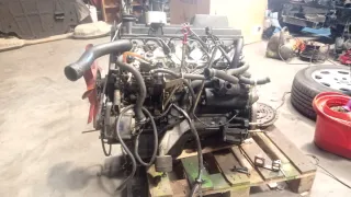 Motor completo de BMW 325tds con sistema Turbo Diesel. Se vende todo lo que se ve en las fotos. Esta completo menos el alternador qhe se uso de donante Se desmonto con 220.000km - Incluye unidad de control Bosch. - Componentes visibles como mangueras y cableado.