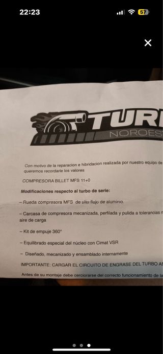 Turbo híbrido de alto rendimiento hibridado en Portugal para BMW M57 para mas de 400 cv se puede soplar maximo hasta 2.6 bares Costo mas de 1000€ solo hibridarlo + el turbo y mandarlo a hacer