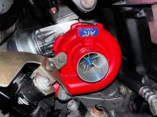 Turbo híbrido ATC con carcasa de admisión en color rojo y compresor en color azul.Aguanta hasta 190 CV - Carcasa de admisión roja. - Compresor azul.