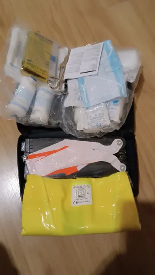 Kit de emergencia de la marca Cupra,nuevo,incluye triángulos,chaleco y kit de primeros auxilios. Despiece,turbo,híbrido, eléctrico, enchufable.