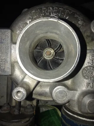 Turbo Garrett modificado para mejorar el rendimiento.Montado en un Seat León 1.9 TDI 130cv ,estaba dando 250cv aproximadamente . Hay que cambiar cartucho,de ahí su precio,algo negociable - Modelo híbrido. - Marca Garrett.