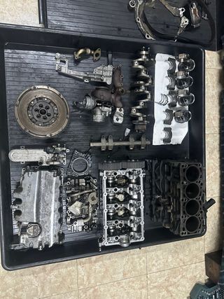 Piezas de despiece de motor Volkswagen BKP. Componentes variados para reparación o sustitución. - Cigüeñal - Árbol de levas - Pistones - Culata - Bloque motor - Turbo - Volante motor - Cárter - Bomba de aceite - Múltiple de admisión - Múltiple de escape