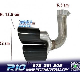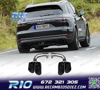 Móvel: 672 321 305 - Referencia: ESC010133. COLAS ESCAPE PORSCHE CAYENNE 17- LOOK S NEGRO Válido para: Porsche Cayenne 9Y0 SUV 3.0 (2017-) No valido para: Porsche Cayenne S Porsche Cayenne Turbo / Turbo S Porsche Cayenne GTS Dimensiones: Diametro de salida: 6,5 cm Largo: 36 cm Ancho: 22 cm Alto: 12,5 cm Especificaciones: Modelo: Look S Tipo de salida: Doble a ambos lados Color: Negro Montaje. Fácil instalación sin modificar nada en el vehículo. Kit completo. Incluye las 2 colas de escape listas para instalar. Estos no son productos originales de la marca PORSCHE. El art?
