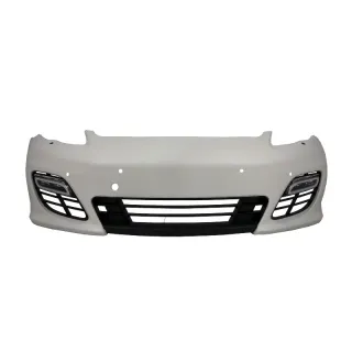 Paragolpes delantero para Porsche Panamera 970 de 2010 a 2014 tipo Turbo GTS Compatible con Porsche Panamera de 2010 a 2014 No es adecuado para: Porsche Panamera Facelift o Porsche Panamera Original GTS Incluye: Parrilla central-baja, orificios para sensores de aparcamiento (PDC), rejillas laterales y luces DRL LED. Fabricado en polipropileno de la alta calidad, se entrega imprimado.