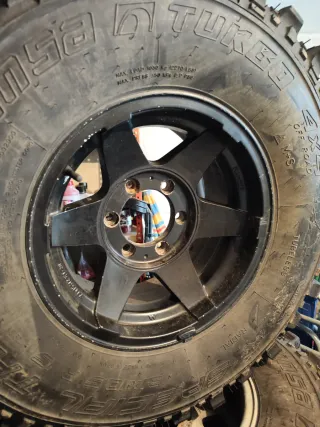 5 Neumáticos todoterreno insa turbo special track con llantas - Medidas: 315/75 R15 - Carga máxima: 1080 Kg (2270 LBS) - Presión máxima: 350 kPa (50 PSI) - Fabricados en España.
