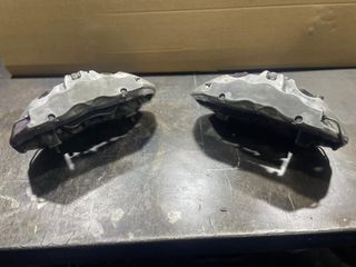 Par de pinzas de freno Brembo de 6 pistones provinientes de Porsche Cayenne Turbo. Se encuentran en buen estado, con algunas marcas de uso. Estan restauradas con todos los retenes cambiados y están preparadas para pintar ya del color que se quiera. Van con juego de pastillas incluidas al 90% #brembo #pinzas #porsche #frenos
