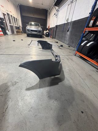 Paragolpes trasero para Porsche original Cayenne Turbo modelo 957. - Color gris original. - Version TURBO. - Parte superior del paragolpes. -Sensores originales