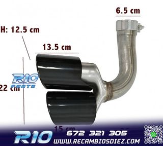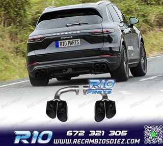 Móvil: 672 321 305 - Referencia: ESC010133. COLAS ESCAPE PORSCHE CAYENNE 17- LOOK S NEGRO Válido para: Porsche Cayenne 9Y0 SUV 3.0 (2017-) No valido para: Porsche Cayenne S Porsche Cayenne Turbo / Turbo S Porsche Cayenne GTS Dimensiones: Diametro de salida: 6,5 cm Largo: 36 cm Ancho: 22 cm Alto: 12,5 cm Especificaciones: Modelo: Look S Tipo de salida: Doble a ambos lados Color: Negro Montaje. Fácil instalación sin modificar nada en el vehículo. Kit completo. Incluye las 2 colas de escape listas para instalar. Estos no son productos originales de la marca PORSCHE. El art?