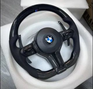 Volante deportivo BMW M Performance con acabado en fibra de carbono y display. - Diseño deportivo y ergonómico. - costuras en color M - Detalles en cuero perforado. - Insignia M Performance. - Display con luces f1. (Salida de presion turbo, consumos, velocidad, etc en pantalla). Modelo perfecto para los vehiculos que salen en las fotos. Cualquier duda aqui me tienen Se fabrican volantes a medidas, Mercedes, audi, Golf, Porsche.