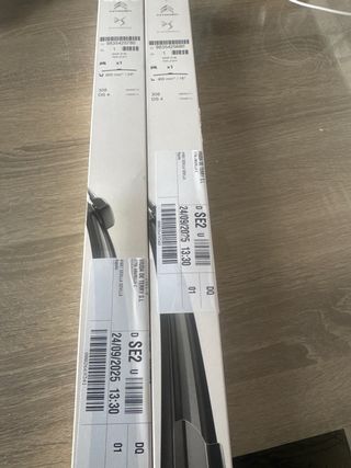 Juego de escobillas delanteras para Peugeot 308 y DS4. - Escobilla de 600 mm / 24 pulgadas. - Escobilla de 400 mm / 16 pulgadas. - Fabricadas en Bélgica. - Lote de producción: 09/2021 y 10/2021.