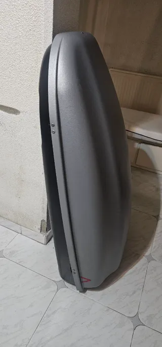 Baúl o cofre para coche en color gris. Se encuentra en perfecto estado. - Diseño aerodinámico. - Cierre seguro.