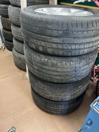 Se venden llantas y neumáticos de BMW. 225/55/16 99Y dispongo de juego completo de las cuatro. buen estado - Llantas de aleación plateadas. - Neumáticos con código DOT 024774521VR2