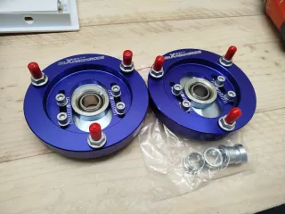 Juego de copelas delanteras regulables de para BMW serie 3 E46. Nuevas a estrenar. No son válidas para suspensión de serie, por eso no las puedo poner. Solo sirven para roscadas. - Marca: Maxpeedingrods. - Color: Azul. - Incluye casquillos.