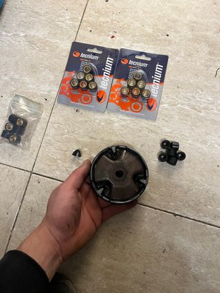 Variador de serie yamaha jogg, incluyo juego de pesos de 5g dos juegos, 6g y 7g esta en buen estado, el pasador metalico que no sale en la foto lo tengo, faltarian las grapitas de plastico, , artistic, axis, aerox, malossi, mhr testa rosa, lmr, fast, brk, beta, piaggio, polini, hebo, airsal, top negro, top rosa, krm, italkit, pwk)