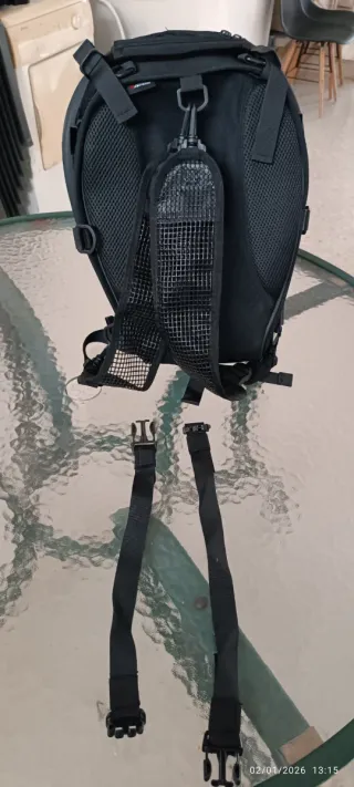 Mochila negra, ideal para motociclistas. Diseñada para ser práctica y funcional. - Compartimento principal espacioso. - Correas ajustables para mayor comodidad. - Material resistente y duradero.