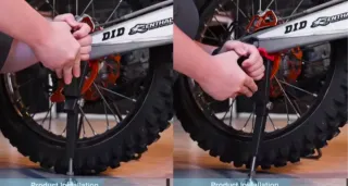 Herramienta para desmontar neumáticos de moto. - Construcción robusta en color rojo. - Base estable para sujeción.