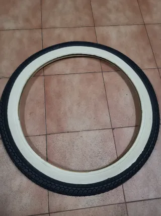 Cubierta Michelin con banda blanca, tamaño 2.1/4 - 18. Procedente de antiguo stock. - Diseño clásico con detalles en blanco. - Ideal para vespinos L, Gl.