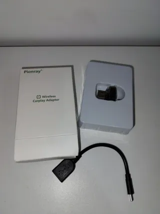 Adaptador para conectar CarPlay y Android Auto de forma inalámbrica. Incluye el adaptador y el cable. - Diseño compacto. - Conexión USB.