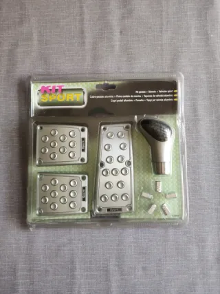 Kit de accesorios deportivos para coche. - Cubre-pedales de aluminio con diseño antideslizante. - Pomo de cambio de marcha en aluminio. - Tapones para válvulas de aluminio.
